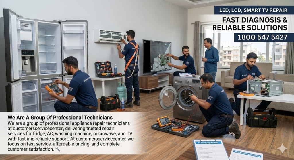 We are a group of professional appliance repair technicians at customersservicecenter, delivering trusted repair services for fridge, AC, washing machine, microwave, and TV with fast and reliable support. We are a group of professional technicians providing expert repair services for fridges, ACs, washing machines, microwaves, and TVs. At customersservicecenter, we focus on fast service, affordable pricing, and complete customer satisfaction. đź”§